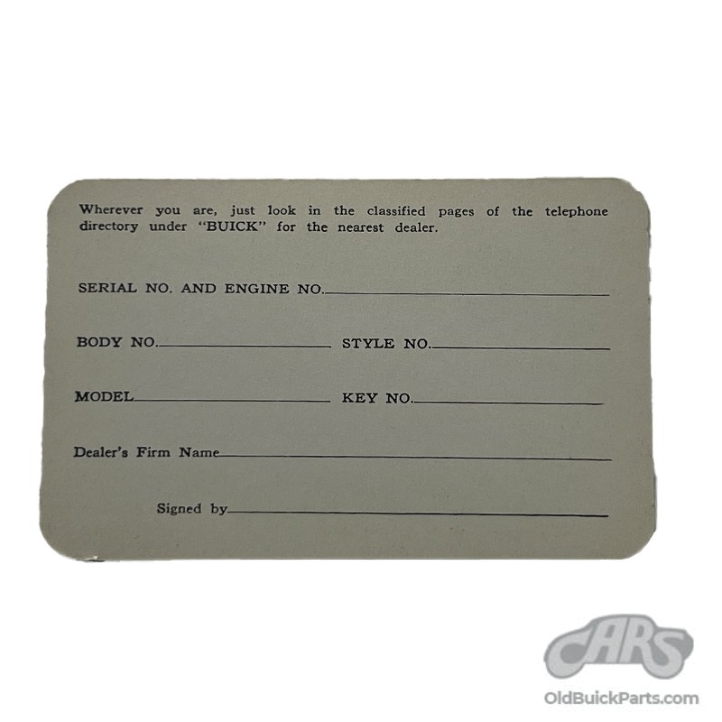 SKU: D23 - 1936-1960 Buick Owner's I.D. Card